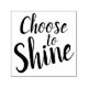Um selo de autoimpressão distante com um fundo estrelado e as palavras "Escolher Brilhar" em um script amarelo.