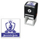 O design do produto apresenta um brasão com um pinguim em pé com um tubo interno e bola de praia. Esta ilustração de animal bastante selvagem com texto personalizado torna um carimbo de borracha auto-entintado fofo e único para crianças.