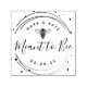 Carimbo personalizado de auto-tinta para lembrança de casamento com desenho moderno e elegante de linhas e pontos circulares "Meant to Bee". Personalize este carimbo com os nomes do noivo e da noiva/casal e data do casamento. Use o carimbo em etiquetas, rótulos e adesivos para criar lembranças/gifts únicos de mel.