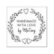 Manuscrito Com Amor ... carimbo personalizado para seus presentes pessoais ou pequenas empresas. Este design bonitinho tem uma coroa botânica desenhada com corações e folhagem. Ela é escrita com tipografia moderna e escrita manual casual. Um doce design de estilo rústico do país para artesãos de presentes feitos à mão e produtos de varejo.