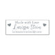 Um belo produto personalizado com as palavras 'Made with Love', para personalizar seus produtos feitos à mão com amor.. seu próprio nome ou marca em um estilo de fonte elegante, e uma linha para adicionar e-mail ou qualquer outra informação adicional sobre seu negócio.. dois pequenos corações amorosos nos lados