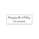 Feliz Aniversário é uma escrita cursiva neste selo de autoinchaço. Há também texto não-script para o seu nome. Todo o texto pode ser editado ou excluído.