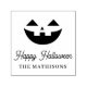 Adicione um encanto com a mão ao seu truque de Halloween ou trate bolsas, favoritos para festas e cartões com este carimbo personalizado, com "Feliz Dia das Bruxas" e o(s) seu(s) nome(s) debaixo de uma tomada assustadora ou ilustração de abóbora-lanterna.
