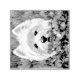 West Highland White Terrier e flores rosa. Cachorro ocidental a espreitar por um arbusto florescente. Sophie. Copyright © 2025 Angi Laframboise. Dons de cães de arte para amantes de cães.