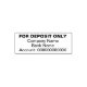 For deposit only is at the top in a bold font. On the second line, you can add your business name. The third line is for the bank's name. There are digits you can change to the bank account number on the bottom line. All text can be edited or deleted.