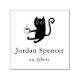 Este simples carimbo apresenta uma ilustração desenhada à mão de um gato segurando um café quente. Seu nome é impresso em tipografia serifada clássica, com "ex libris" em itálico abaixo. Um ótimo presente para professores, bibliotecários e amantes de livros. Veja a coleção vinculada nesta página para mais designs de carimbo de livro!