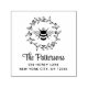 Honey Bee Floral Wreath Professional Personal Return Address Self Inking Stamp apresenta uma abelha de mel cercada por uma coroa floral com o seu nome personalizado e endereço de retorno abaixo num elegante roteiro de caligrafia. Perfeito para cartões de Natal, cartões de natal, convites de festas de Natal e festas de Natal ou no escritório para produtos ou correio. Elaborado por ©Evco Studio www.zazzle.com/store/evcostudio
