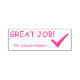 Este design de carimbo motivador apresenta a mensagem motivacional "EXCELENTE JOB!" e o nome de um professor, educador ou professor personalizado. Ele também apresenta um ícone de marca de seleção decorativa. Pode ser usado por um professor ou educador ao marcar tarefas, para reconhecer que um aluno fez bem.