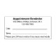 Este carimbo diz "Lembrete de compromisso" em uma fonte em negrito no topo. Em seguida, você pode editar duas linhas de texto a serem exibidas para o nome do médico (ou o nome da prática) e o número de telefone. Há também linhas para a data e hora da nomeação. O texto adicional está perto do fim da sua mensagem personalizada. Todo o texto pode ser editado ou excluído.