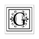 monograma,inicial,elegante,preto,branco,quadrado,borda,letra g