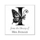 Carimbo Automático de Monograma Borboleta Letra I - Design Personalizável de Placa de Nome de Biblioteca. Adicione um toque pessoal à sua coleção de livros com este design que apresenta um monograma da letra I com detalhes de borboleta e florais. Texto personalizável "Da Biblioteca De" e seu nome personalizado, este carimbo garante que você nunca mais perca um livro. Este design combina charme vintage com praticidade moderna, tornando-o perfeito para marcar sua biblioteca pessoal ou presentear a um amante de livros. Seja você um professor, bibliotecário ou simplesmente adore ler, esses carimbos de placa de nome personalizados são uma maneira elegante de dizer "Este Livro Pertence a Mim". Ideal para bibliotecas pessoais, amantes de livros, leitores, professores e bibliotecários escolares.