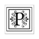 monograma,inicial,elegante,preto,branco,quadrado,borda,letra P