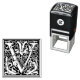 Carimbo Auto Entintado Letra V art nouveau Azulejo preto e branco
