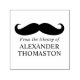 Whimsical Curly Thick Mustache Silhouette "From the library of" Book Name ======== Isto pode ser facilmente alterado para dizer "This Book Belongs to", "Ex Libris", "From the desk of", "from the office of" ou outro texto de sua escolha.