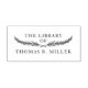 Este simples e elegante selo de biblioteca botânica apresenta seu nome personalizado e o texto "biblioteca de" na tipografia clássica, envolvida em galhos de folha de riso. Personalize esta design clicando no botão "Personalizar".