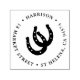 Adicione um encanto estampado à mão a todos os seus sendables com o nosso carimbo de endereço para devolução em ferradura, com um par de ferraduras cercadas pelo seu sobrenome e endereço para devolução.