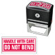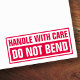 Carimbo autocolante com o texto "manipular com cuidado, não dobrar".