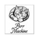 Carimbo autopicante num retrato de um gato bonito, dormindo, listrado com a legenda "Purr Machine"