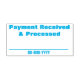 Este design de carimbo simples e básico apresenta as mensagens "Pagamento Recebido e Processado" e uma linha onde uma data de pagamento pode ser escrita. Talvez possa ser usado para indicar que uma fatura ou fatura foi paga em cheio.