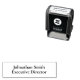 Este carimbo de autoimpressão tem duas linhas de texto a apresentar para um nome e um título de tarefa ou uma mensagem personalizada.