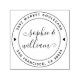 Crie seu endereço de volta redondo de casamento e faça toda a correspondência sem esforço. Basta clicar em "Personalizar esta modelo" e colocar o nome da noiva ou noiva no primeiro e segundo campos, o número da sua casa e rua no terceiro, e a sua cidade, estado e CEP no quarto. Esse design de selo de borracha é simples, mas moderno, com dois círculos com coração no meio. Combinação de fontes elegantes de caligrafia com tipografia sans-serif de eterno. E você pode escolher entre 9 cores diferentes de tinta!