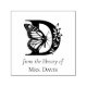 Carimbo Automático de Monograma de Borboleta com Letra D - Design Personalizável de Placa de Nome de Biblioteca. Adicione um toque pessoal à sua coleção de livros com este design que apresenta um monograma com a letra A com detalhes de borboleta e florais. Texto personalizável que lê "Da Biblioteca De" e seu nome personalizado, este carimbo garante que você nunca mais perca um livro. Este design combina charme vintage com praticidade moderna, tornando-o perfeito para marcar sua biblioteca pessoal ou presentear a um amante de livros. Seja você um professor, bibliotecário ou simplesmente adore ler, esses carimbos de placa de nome personalizados são uma maneira elegante de dizer "Este Livro Pertence a Mim". Ideal para bibliotecas pessoais, amantes de livros, leitores, professores e bibliotecários escolares.