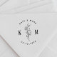 Carimbo de monograma de casamento personalizado, com forma moderna de arco boêmico com design de folhagem de desenho manual.