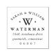 O selo de borracha de endereço de retorno elegante apresenta os seus primeiros nomes curvados graciosamente sobre o monograma inicial do seu solteiro, com o seu nome de família e os detalhes de endereço de retorno abaixo em bloco clássico e letra itálica.