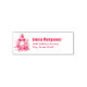 Carimbo de nome e endereço, com uma imagem de Natal acolhedora, com uma lanterna vermelha rodeada de pínus e uma poinsettia e sagrada.