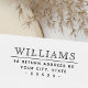 Carimbo de borracha de endereço de retorno elegante com seu sobrenome/nome da família em uma fonte de estilo vintage e o endereço abaixo sob uma linha separadora