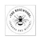Carimbo de Nome de Família Único Auto-entintado apresenta tipografia moderna com pontos circulares e uma abelha que pode ser personalizada.