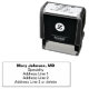 Este modelo de selo médico tem cinco linhas de texto. Todo o texto pode ser editado ou excluído. A linha de cima é ousada para o nome do médico. A segunda linha é para a especialidade médica do médico. As outras linhas são para o endereço de retorno.