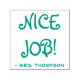 Este design de carimbo apresenta a mensagem "NICE JOB!" e um nome de professor personalizado. Pode ser usado por um professor enquanto formando tarefas para reconhecer um aluno que fez um trabalho particularmente bom.