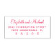 Personalize facilmente esses carimbos personalizados de borda suave com nomes de scripts de casamento Devolver endereço com autoimpressão com seus próprios nomes e endereços. Para personalizar esses carimbos, clique em "Personalizar este modelo" e altere o texto nas caixas fornecidas. Disponível em 9 cores diferentes e 6 tamanhos. Visualize seu design no monitor o mais próximo possível do tamanho real para garantir que o texto impressão no tamanho esperado. Para uso como carimbo de endereço de retorno, a maioria das pessoas exigirá um tamanho maior que este. Esses carimbos de borracha de tinta automática que retornam carimbam até 10.000 impressões com cada cartucho, possuem um toque suave para punhos seguros e dedos sem tinta e um processo de fabricação ecológico. Nenhuma quantidade mínima da ordem.