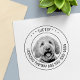 Foto personalizável de animal de estimação e carimbo de texto. Observe que talvez seja necessário ajustar as informações adicionando ou excluindo alguns caracteres para fazer o texto alinhado corretamente.