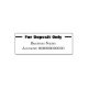 Um carimbo de aprovação de cheque pode ajudar a levar os depósitos bancários da sua empresa para a conta correta. Todo o texto pode ser editado ou excluído. Para depósito, somente está em negrito próximo ao topo. A segunda linha de texto é para o seu nome comercial. A última linha de texto tem dígitos a serem alterados para o número da sua conta bancária.