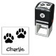 Carimbo personalizado e bonito de autocolante, com duas impressões de pata e um nome. Personalize substituindo o nome de exemplo Charlie pelo nome do seu animal de estimação ou por qualquer nome personalizado que você deseja usar.
