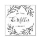 Carimbo da chapa de matrícula da família, concebido por medida personalizada, com folhas e ramos elegantes e modernos, desenhados à mão. Personalizado com o nome da família e ano para um carimbo de estante exclusivo para a sua biblioteca doméstica.