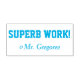 Este design de carimbo encorajador apresenta a mensagem "SUPERB WORK!" e o nome de um professor personalizado. Pode ser usado por um professor ou educador ao marcar tarefas, para reconhecer que um aluno fez bem.