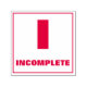 Este carimbo contém a letra "I" e a palavra "INCOMPLETE". Ele poderia ser usado por professores, educadores ou assistentes de ensino ao dar uma nota enquanto marca suas tarefas, testes, projetos, testes, exames, trabalhos e outras obras acadêmicas.