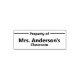 Este é um selo que os professores podem usar para identificar livros e outros pertences que pertencem à sua sala de aula. A linha superior diz Propriedade de. A segunda linha é para o nome do professor. A linha inferior diz sala de aula. A fonte é negrito.