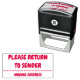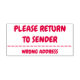 Este simples design de carimbo apresenta as mensagens "REGRESSAR AO ENDER" e "ENDEREÇO ERRADO". Pode ser usado para indicar que o correio recebido foi entregue no endereço errado ou que o destinatário é desconhecido e deve ser devolvido ao remetente.