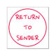 Este design de carimbo apresenta a mensagem "RETORN TO SENDER" em uma fonte casual dentro de um contorno de círculo. Pode ser utilizado por correio postal que tenha sido entregue, mas para o qual o destinatário seja desconhecido.