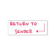 Este design de carimbo apresenta a mensagem "RETORN TO SENDER" em uma fonte casual, juntamente com uma forma de seta. Pode ser utilizado por correio postal que tenha sido entregue, mas para o qual o destinatário seja desconhecido.