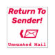 Este design de carimbo de atenções apresenta as mensagens "Return To Sender!" e "Unwant Mail", juntamente com um símbolo de seta decorativa. Talvez seja usado para indicar que o correio recebido foi entregue no endereço errado ou que o destinatário é desconhecido e deve ser devolvido ao remetente.