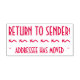 Este design de carimbo apresenta as mensagens "RETORN TO SENDER!" e "~ ADDRESSEE WITH MOVED ~", juntamente com as formas de seta. Ele pode ser usado para indicar que o correio recebido foi entregue para o endereço errado ou para um destinatário desconhecido e deve ser devolvido ao remetente.