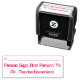 Este design de carimbo de estilo digital apresenta a mensagem "Please Sign And Return To" (Assinar e voltar para), além de uma linha para uma assinatura ou iniciais a serem escritas acima. Inclui também o nome de um professor ou educador personalizado. Pode ser usado por um tutor, professor ou educador para pedir aos pais ou guardiães de um aluno que revejam e reconheçam a marca que um estudante obteve num teste, projeto, jornal, teste ou qualquer outra tarefa escolar.