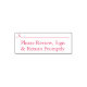 Este sofisticado design de carimbo contém a mensagem "Please Review, Sign & Return Promptly", juntamente com uma linha que permite a escrita de uma assinatura ou iniciais. Talvez possa ser utilizado por um professor ou por um profissional administrativo para pedir que alguém reveja e reconheça o conteúdo de um documento ou de outra documentação.