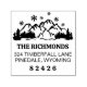 Rustic return address stamp, perfect for Christmas or the winter season, with snowflakes falling over craggy mountain tops and spruces and pines. Personalize with your family name, address, and zip code. Use for your holiday mail, rustic winter wedding invitations and more!