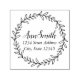 Carimbo de endereço de retorno de tinta automática, concebido por medida personalizada, com uma coroa de folhagem desenhada à mão com nome e endereço personalizados.